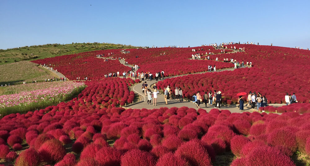 海浜公園で有名なのが春のネモフィラと秋のコキア。見頃の時期になるとニュースでもよく流れています。真っ赤なコキアを見に行こうと決めました。