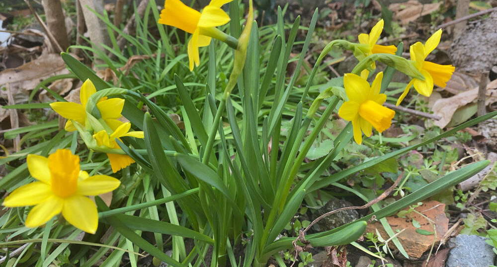 ひょっこり現れたスイセンの花。