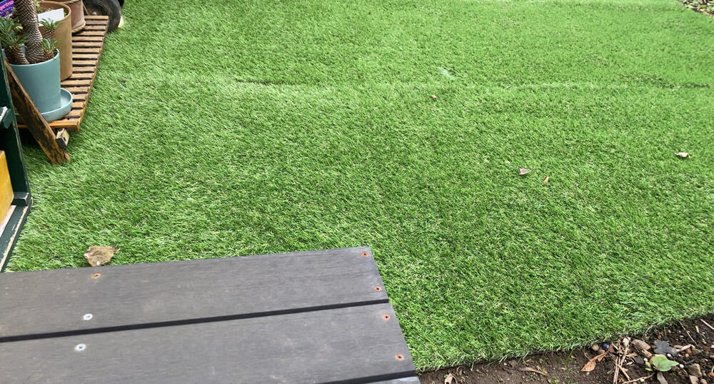 庭の一部に人工芝を敷いてみた。まずは地ならししてから防草シートをカットして敷き、その上に人工芝を敷いた。芝の丈は35ミリで結構ふかふか。全面芝にしたわけではないけど、土の庭から雰囲気ガラリと変わる。雑草抑えにもなりそう。