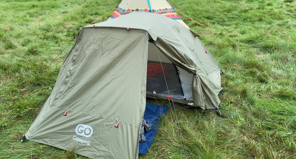 テントは送る荷物に入れるけど重いのはNG。色々ネットで見て買ったのがこれ、Go Glampingのツーリングドーム。現地ではキャノピーは立ち上げずに片側を閉じて使った。