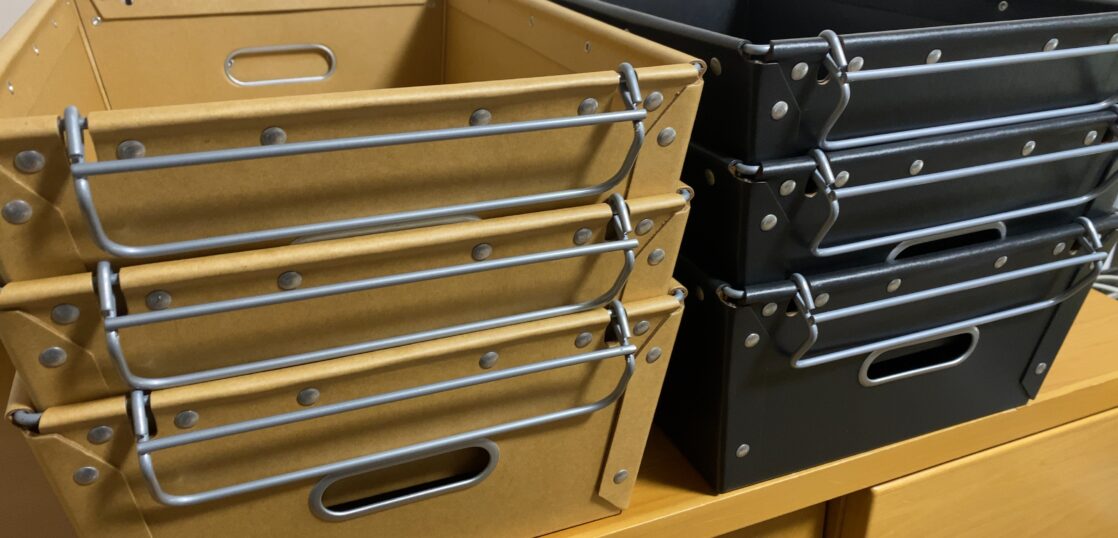 昔からパルプボックスが好きで我が家には硬質パルプの引き出しチェストやボックスが多い。ネットで整理ボックスを買ったらこれがとっても便利だったので、今回6個買い足した。