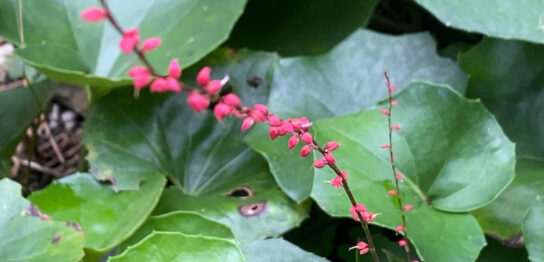 秋になるといつの間にか梅の木の下に咲いてるこの花。調べたらミズヒキというらしい。紅白の色が水引に似てるからだって。花の名前って面白い。