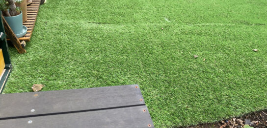庭の一部に人工芝を敷いてみた。まずは地ならししてから防草シートをカットして敷き、その上に人工芝を敷いた。芝の丈は35ミリで結構ふかふか。全面芝にしたわけではない