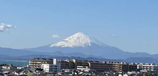 去年末から江の島方面に行くことが多くなって、富士山を見る日が増えました。これはモノレールの湘南江の島駅の展望デッキから撮ったもの。快晴で風のある日がよく見えます