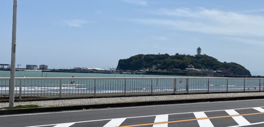 湘南モノレールの目白山下から見た海は濃いブルーとエメラルドグリーンのツートンカラー。めっちゃきれい!! 腰越の浜まで出てみると本当に沖縄の海みたいな色。こんな色