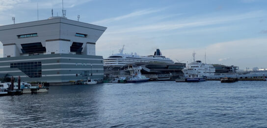 カナケンの待ち時間に見た何年ぶりかの大桟橋。山下公園からだとこう見えるんだ。客船が停泊してた。この景色を見ながら仕事してたんだもんなぁ。今考えると贅沢だったのか